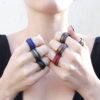 Bague en cuir plissé, patiné et mis en forme à la main sur une armature métallique. Chaque plissé est légèrement différent, conférant à chaque modèle un caractère unique. Doublure en cuir noir.