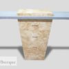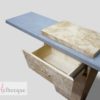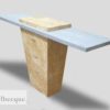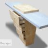 L’alliance du bouleau madré et du béton, conjuguée à sa forme monolithique donne à cette console un aspect très minéral. Elle propose sous son grand plateau, 3 tiroirs de profondeurs dégressives.