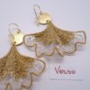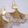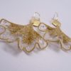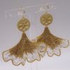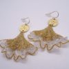 Broderie sur organza de soie et fil lamé or pour ces feuilles de ginko montées en boucles d’oreilles. Beaucoup de féminité et d’élégance pour ce bijou artisanal. Le bord volanté doré et la transparence de la soie donne de la légèreté à ce modèle. La présence de perles en verre couleur cristal à 3 facettes apporte un éclat discret à ce bijou. Le médaillon rond intermédiaire est en laiton doré mat et le crochet d’oreilles est en “gold filled”. Envoi du bijou, bien protégé, dans une boîte-cadeau.