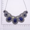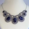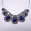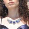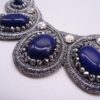 Beaucoup d’allure et d’élégance pour ce collier ras-du-cou entièrement fait-main. Un ensemble de pierres naturelles, Agate bleu foncé, inséré dans une broderie main, éclairé par des petites perles facettées argentées en verre et des strass de cristal Swarovski*. Finition arrière en cuir noir. Ce bijou apportera la touche raffinée et chic à une tenue sobre et convient parfaitement à une réception ou pour briller dans les fêtes de fin d’année. L’envoi se fait dans une boîte-cadeau. Le bijou est prêt à être offert comme cadeau.